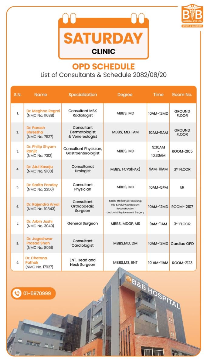 In our unwavering commitment to providing exceptional care to our valued patients, we are thrilled to announce that we have expanded our outpatient department (OPD) services to include Saturdays. This decision reflects our dedication to enhancing accessibility and convenience for all those who rely on our healthcare facilities.